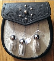 Sporran, Zwart, leer, celtic, pin, 3 tassels
