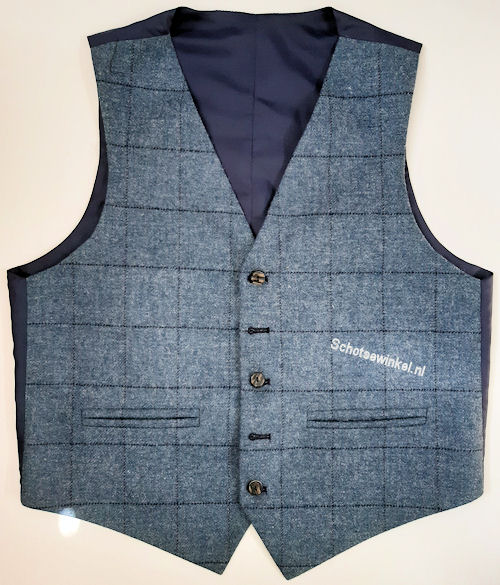 Vest: Waistcoat Use Blue Window Pane Flinstone Tweed, maat: Medium